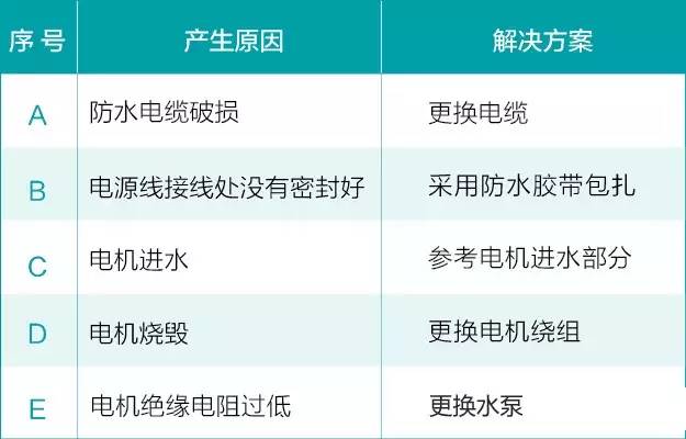 1、防水电缆破损漏电;